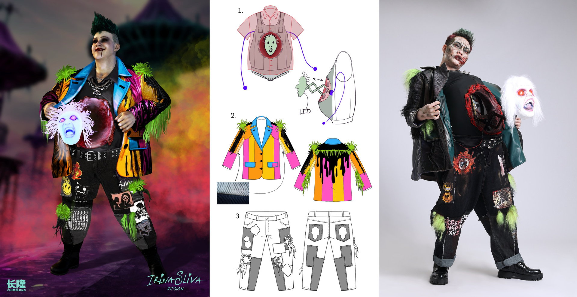 Halloween is the biggest event at Chimelong Paradise Park. Every year, we bring hundreds of characters to life, along with parades and numerous shows. Special attention is given to roaming characters who create a special atmosphere and interact with park guests. Here, you can explore some of my designs for roaming characters and costumes for the Halloween parade